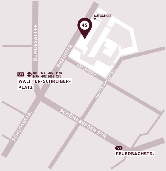 Bei der Hausnr. 45 stehen Sie in der ersten Durchfahrt schon vor Aufgang B. Unser Büro befindet in der 5. Etage von Aufgang B.